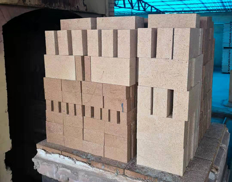 低氣孔粘土磚是由原料:死燒粘土孰料、死燒結合粘土、河南白焦寶石這三種原料,分別破碎成5-3mm,3-1mm,及≤0.088mm配合其他6種添加劑制成六種泥料混煉為顆粒,結合劑、細粉、均勻后,在260T的摩擦壓磚上,用標準磚模壓制成磚坯打擊6-8次,在干燥窯內110°C烘干16h,待磚坯的水分<1%時裝如隧道窯燒制。